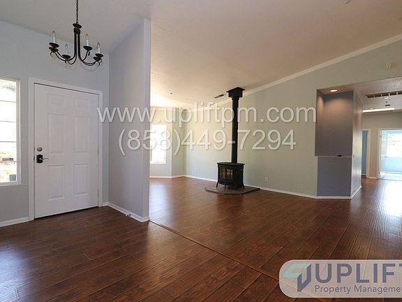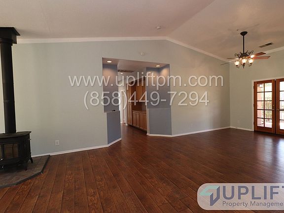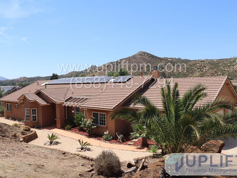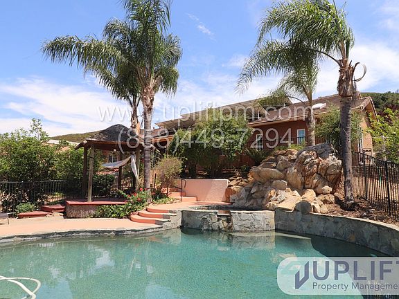 PLEASE READ ENTIRE DESCRIPTION BEFORE CALLING Large property with 5 bedrooms, 2.5 bathrooms, pool, spa and horse corrals. This home, located in Ramona, CA, is waiting for you and ready for occupancy. Hardwood floors in all main areas, vaulted ceilings, a wood burning stove and a propane fireplace, laundry room (propane dryer), attached 2 car garage, dining room with extension to additional living area plus full covered back patio overlooking the pool and grounds. Primary bedroom has full size tub, walk-in closet, separate shower and separate water closet for additional privacy. Covered back patio access via sliding door and with a view of the pool area. 3 guest bedrooms are off long hallway surrounding second bath. Each have full closets, 2 have carpet and 1 is hardwood flooring. 4th bedroom is at other end of home and can be used as a full living space with an armoire for a closet or converted to a home office. Home sits on 1 acre with horse corrals, a private separately fenced pool area with spa and additional pergolas for shade. Pool maintenance and landscaping services included with rental. UNIT INFORMATION: Utilities: Tenant responsible for all utilities. Solar property, tenant responsible for SDGE tru up. Parking/Storage: Garage and Driveway AC/Heat: Central, Propane Laundry: Washer/Dryer hookups, Propane Pet Policy: Pets allowed upon approval. $75 first pet, $50 each additional increased rent per month. Please visit our website to view all the units, information, and the links referenced below. SHOWINGS: Add your name to the waitlist to be notified of a date and time available for a self-guided walkthrough TO APPLY: All our applications are done online through our company website. Be sure to pay the $40 application fee when applying. Each person planning to live here that is over the age of 18 MUST submit an application for approval. REQUIREMENTS TO RENT: 1. Minimum household gross income of 2.8x the monthly rent. 2. A good credit score and clean history (625 minimum). 3. Proof of income to be able to rent. Income can include assistance such as food stamps, child support - call for clarification if necessary. 4. A Social Security Number (SSN) or Individual Taxpayer Identification Number (ITIN). 5. Valid, current, government issued Photo ID. All Uplift Property Management residents are enrolled in the Resident Benefits Package (RBP) for $45.95/month which includes liability insurance, fee forgiveness, HVAC air filter delivery (for applicable properties), our best-in-class resident rewards program and much more! More details upon application. $40 Application fee is NOT refundable. Units are rented to the best qualified applicant when assessed using the requirements to rent. Conditional approval may be possible for people that do not meet all requirements. Applicants that do not meet all requirements will be subordinate to fully qualified applicants. Uplift Property Management CA DRE License #01902511