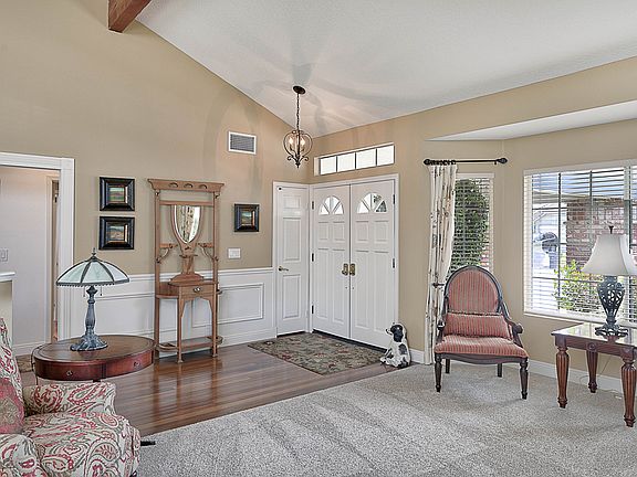 Updated and upgraded Mountain View Home. Bright and airy home with vaulted ceilings in the living room, formal dining room, and kitchen. Newer carpet throughout as well as Brazilian Walnut hardwood floors. Updated kitchen with custom cabinetry, Viking cooktop, double ovens, split dishwasher, side by side built in Freezer and Refrigerator, all stainless steel plus a large island and views of the backyard from the kitchen bay window. The Family room has a wood/gas fireplace, recessed lighting and built-in shelves. Downstairs bedroom has access to the downstairs bathroom with a shower (used as an office with custom built ins that can be converted back to closets). Upstairs there are two guest rooms and a full bathroom. One of the bedrooms is used as an office also with custom built ins that can be converted back to a closet. The owners retreat is bright and spacious with quality built ins in the bedroom and in the walk-in closet. The relaxing back yard offers a wraparound backyard with an in-ground spa, lush green grounds, covered patios and privacy. Other features include, ceiling fans in all rooms, plantation shutters in all bedrooms. New exterior paint and a 220V electrical panel. No Mello Roos and No HOA! Walking distance to local park and Blue Ribbon elementary school.