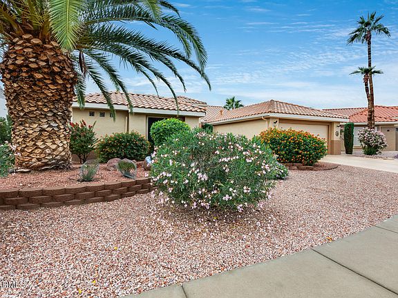 Stunning Sun City West Home with Casita & Upgrades! Welcome to this beautifully updated 2,186 sq. ft. residence in the heart of Sun City West, complete with a 247 sq. ft. casita—perfect for guests, hobbies, or a private retreat. This thoughtfully designed home offers 2 bedrooms, a den, and an additional casita with a full bath, giving you flexible living spaces to fit your lifestyle. Step inside and you'll immediately notice the attention to detail and numerous upgrades which includes... solar with a makes sense lease for energy efficiency, private back patio for outdoor enjoyment and front enclosed courtyard with iron gate for style. Granite countertops and newer kitchen cabinets with pull-outs in both the kitchen and pantry, walk-in showers and heightened vanities in both bathrooms newer vinyl flooring, 2025 tankless hot water heater, kitchen water filtration system, oversized garage with storage and sink. Converted AZ room with dual-paned vinyl windows, sliding glass door, dedicated HVAC, and drop-down shades, and mounted TV. Great space for entertaining. Brand new carpet, fresh interior paint, and exterior painted in 2024. Newer appliances, pendant lighting over kitchen bar, newer fans. Wood blinds, and custom valances. Beautiful landscaping and a walkway connecting the front yard to the back patio, Fruit trees too, orange, grapefruit, lemon.