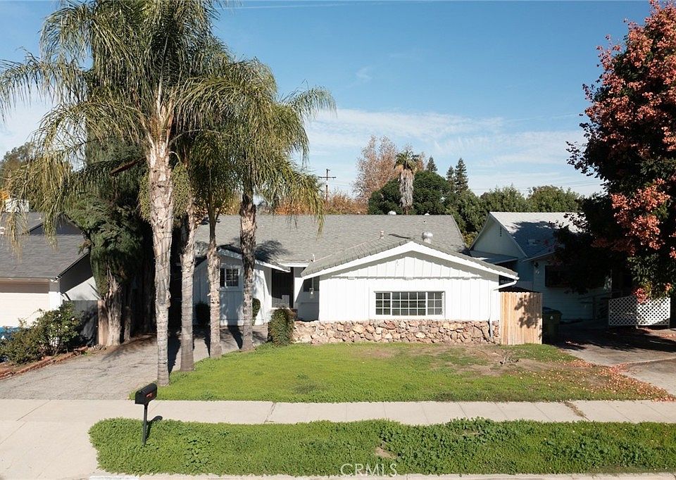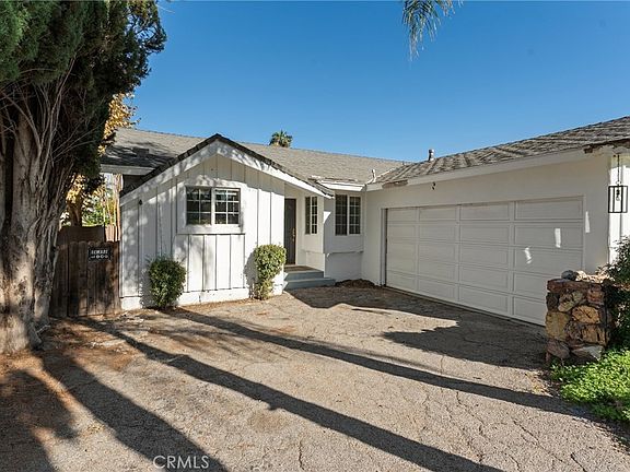 Fantastic opportunity to own a single story pool home situated on an extremely rare street-to-street lot! A large portion of the property extends over 200 feet and connects to the street behind (Miranda), presenting amazing investment potential to build an ADU or alternatively use for extra backyard play space for a sports court/outdoor kitchen/etc or use for oversized parking for RVs/boats - the possibilities are endless. The classic ranch home is cladded with original stone & wood siding and sits back from the street with long driveway lined by towering mature Palm trees that leads to the attached 2-car garage with direct access. Step inside to find a completely open floor plan filled with natural light. The oversized central living room boasts high vaulted wood beamed ceiling, stone fireplace, and sliding glass doors that open to the backyard. The open kitchen features granite counters and stainless appliances. A separate dining area connects the kitchen and living room and features real hardwood flooring. The three bedrooms are located on their own private wing of the home. The primary bedroom features a spacious closet and a private en-suite bathroom with walk-in shower. The two secondary bedrooms have closets with built-ins and share a large hall bathroom with dual sinks and bath tub with shower. The backyard is highlighted by a resurfaced swimming pool and features a sweeping covered patio for outdoor dining and an expansive portion of land with fruit trees that provides a blank canvas to customize to your liking. Additional system upgrades per seller include new HVAC system (2025), newer electrical panel (2023), copper plumbing (2006), and dual paned windows throughout. Adjacent to Westfield Mall/Village, Calabasas Commons, Warner Center with the new Rams Village in development, & zoned for award-winning El Camino & Hale charter schools.