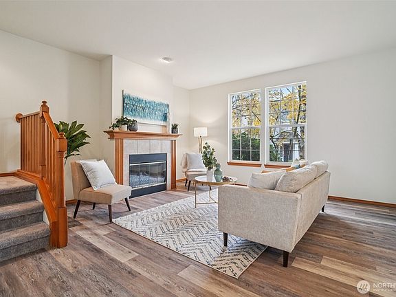 Freshly renovated w/new interior paint, new flooring & countertops throughout, & a stylishly updated kitchen complete w/a modern backsplash. A truly impressive transformation! This spacious home has 2 bedrooms, upstairs den (possible 3rd Br) 2.25 baths. The home greets you with a welcoming foyer that leads to your main living space featuring a cozy gas fire place. Upstairs boasts a spacious primary bedroom w/generous primary bath & utility closet nearby. Kitchen includes extra bar style seating plus SS Appliances, lots of counter & cabinet space. Balcony off the kitchen has room for BBQ & outside area. 2 car garage w/extra storage space. Lake Washington schools! Close location to shopping, restaurants, schools. This home is East Facing!