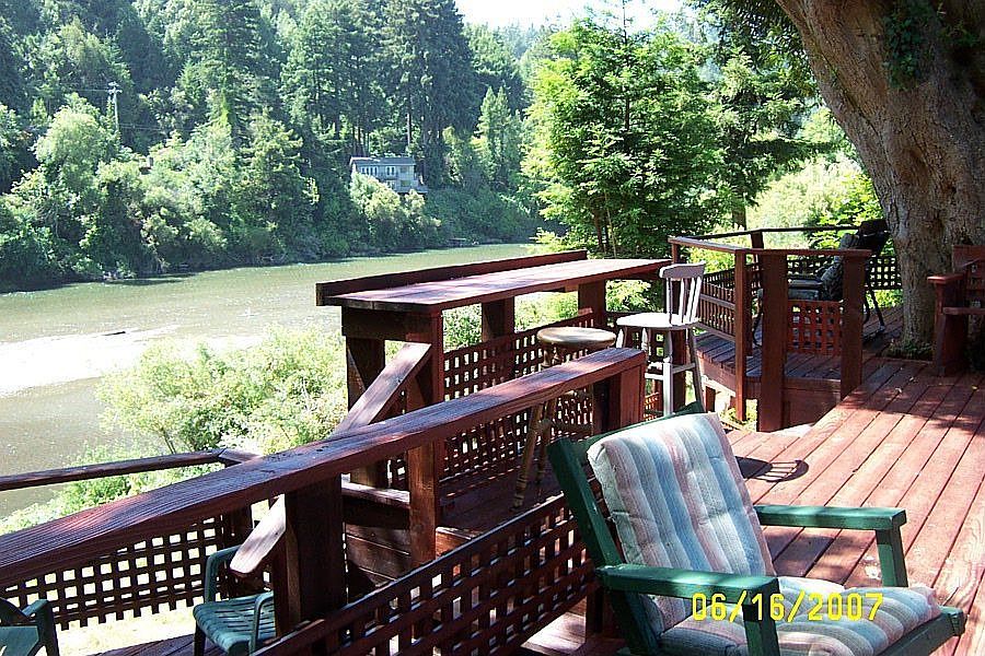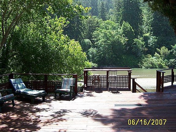 Celebrate at a lovely Riverfront vacation home. Spectacular decks, private and intimate view, level fenced front yard, sunny with beautiful private river views. 3 Bedroom/2 bath with in-law unit with 2nd kitchen for extended families. Wine tasting, golfing, hiking, Pacific Coast gorgeous beach within 10 min drive, Armstrong Redwoods Park for serenity, golfing, bicycling and more... One block from the main Russian River cycling loop, in a beautiful meadow right on the river in a prime locatio... Neighborhood Description Sunny flat area, quiet neighborhood, beautiful spot on the Russian River,