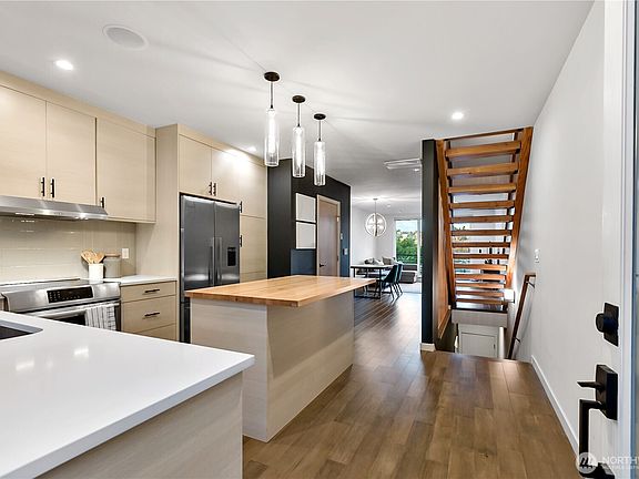 Modern, beautifully designed townhome in vibrant Queen Anne with sweeping west-facing views! This energy-efficient home features solar panels, EV charging garage, ERV fresh air system, multi-room speaker setup, and energy tracking with Sense. Live comfortably in this 3 bed, 2.25 bath spacious home with a rooftop deck. Built by a reputable green builder, with thoughtful details throughout. Easy access to 15th Ave! Extra storage via crawl space entry from garage. Close to Whole Foods, daycare, gym, and Interbay Golf Course. Easy drives to Ballard, Fremont, and SLU. Commute with ease to Expedia, Google, Facebook, and Amazon. Located in top-rated Seattle School District!