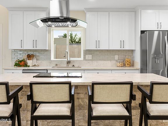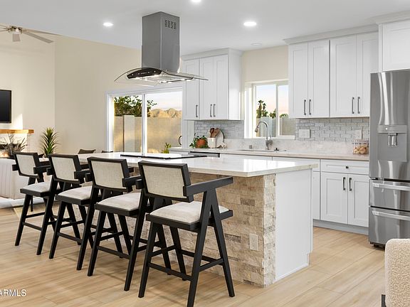 Beautifully reimagined, this 4BD/3BA retreat is perfectly positioned on a private cul-de-sac surrounded by mountain views. A formal entry opens to a spacious, light-filled great room with soaring ceilings and a cozy fireplace. The gourmet kitchen features an expansive island and seamlessly connects to a generous dining area with a serving station and beverage bar. The primary ensuite is bathed in natural light and offers a private patio, spa-inspired bathroom, and ample closet space. Upstairs, the fourth bedroom enjoys breathtaking views and access to an adjacent full bath. Outdoors, take in views from every angle with a new pool featuring a Baja shelf, low-maintenance turf yard and fruit trees. All just steps from preserve trails, parks, and with easy access to the 51.
