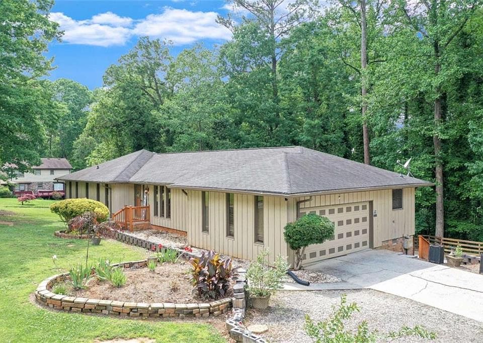 This hard-to-find Ranch-style home with a full finished basement is perfect for separate living! The gravel driveway leads to the basement entrance! This home is in a mature neighborhood 10 minutes from the Mall of GA, 5 minutes from Coolray Field, and a mile from a Collins Hill golf course. This home gives privacy with a den, family room with a wood-burning fireplace, dining room, and kitchen. You will love to sit and relax on the breathtaking screened-in porch looking out to the peaceful wooded area. The home has the primary bedroom and two other bedrooms on the main level. The finished basement can be entered from the inside or outside, showcasing a living room, two bedrooms, two flex rooms large enough for a media room or exercise room, and an office. It also has a large front yard with plenty of parking on the side entrance garage and a wide driveway.
