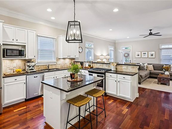 Welcome to 2273 Paul Avenue NW, a stunning Charleston-style home nestled on one of Riverside’s most desirable streets in Atlanta’s booming Upper Westside. This beautifully maintained residence combines timeless Southern charm with modern convenience and walkability to the best of the Westside. Step inside to find an open-concept floor plan filled with natural light and hardwood flooring throughout. The spacious main level features a welcoming entry foyer, 10-foot ceilings, and a bright kitchen that serves as the heart of the home, complete with stone countertops, white cabinetry, a large island, stainless steel appliances, and views to the fireside family room and dining area. There are multiple outdoor living spaces, including double front porches and a private rear deck perfect for entertaining. The primary suite offers a peaceful retreat with a gas fireplace, walk-in closet, and a luxurious ensuite bath featuring a double vanity, soaking tub, and separate shower. Upstairs, you’ll find two additional bedrooms, a bathroom and laundry room. Outside, enjoy three inviting porches and a large fenced common green space with a play area shared by the neighboring homes which is an ideal setup for gathering or relaxing outdoors. Additional highlights include a detached two-car garage with a huge attic space that could be finished out for additional living space, gas starter fireplaces, crown molding, recessed lighting, and thoughtful architectural details throughout. Located just minutes from The Works, Westside Village, Westside Park, Top Golf, Breweries, Buckhead, and Midtown, this location offers easy access to I-75, I-285, and Atlanta’s best restaurants and retail. Just a short stroll to Riversides newest park which is Atlanta's first park along the Chattahoochee River that showcases a dog park, sports courts, walking trails, community pavilion, greenspace and more!