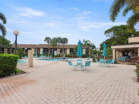 Come to Paradise! Spacious and beautifully updated 3BR/2BA first-floor corner unit in desirable Meadowridge—just steps from the clubhouse and pool. Freshly painted in neutral tones, featuring a mirrored dry bar with Absolute Black granite, white kitchen, updated bathrooms with new vanities, and a double sink in the primary bath. Tile flooring throughout, plus a screened patio with roll-down shutters overlooking a tranquil garden and gazebo. Prime location near beaches, shopping, and major highways.