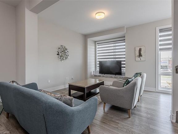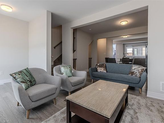 Welcome to this brand-new, never lived in townhome, offering the perfect opportunity to enjoy one of Burlington’s most prestigious neighbourhoods. Nestled in the desirable Millcroft community, this modern residence is designed with growing families in mind, offering over 1,800sf of functional living space close to everything you need. Surrounded by top-rated schools, shopping, golf, parks, and all amenities, this home brings convenience and community in one exceptional package. Outside, the contemporary curb appeal sets the tone with a sleek design, stone porch, and a wood-finish garage door. Step inside to find a welcoming foyer that leads into a versatile recreation room. Bright and inviting, this space features a walkout to a private covered patio with a privacy wall, overlooking shared green space. The second floor is the heart of the home, with an open-concept layout ideal for both entertaining and everyday living. Hardwood flooring runs throughout, enhancing the bright and modern atmosphere. The spacious eat-in kitchen is a chef’s delight with granite countertops, tile backsplash, SS appliances, custom cabinetry, and island with breakfast bar. Walk out to a private balcony where you can enjoy morning coffee or evening gatherings. The kitchen flows into the dining and living areas, while a bonus den provides flexible space for a home office, homework zone, or creative nook. On the third floor, the family-friendly design continues with the convenience of upper-level laundry and 3 well-appointed bedrooms. The primary suite is a true retreat, complete with a walk-in closet and a modern ensuite featuring a glass walk-in shower. Two additional bedrooms share a stylish 4-piece bathroom, offering plenty of room for children or guests. This move-in ready townhome combines modern design, family-focused function, and a prestigious Millcroft location—making it an outstanding choice for families ready to plant roots and grow in Burlington’s most sought-after community.