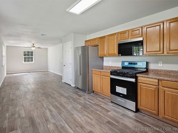 Beautiful setting on 1/2 acre lot close to airport and close to highway 51. This home has been completely updated with new paint, new flooring, new countertops and more. Still in Tahlequah School District it is a private feeling home just on edge of town. A must see for families and singles alike. Additional 1/2 acre lot available for purchase with home.