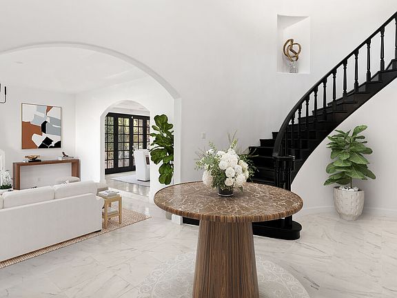 Step into a world of timeless elegance and California charm at this one-of-a-kind gated estate, nestled on a private cul-de-sac in the prestigious Roy Rogers Estates. It beautifully captures the essence of Spanish Colonial Revival architecture, a style beloved in California since the 1920s. From the double-height foyer with a sweeping staircase to the graceful archways and oversized glass windows, every corner of this residence radiates classic Hollywood glamour. The grand, step-down living room features custom windows and a cozy fireplace, flowing seamlessly to an elegant formal dining room with double doors that open to a secluded patio. In the chef's kitchen, marble countertops, custom cabinetry, double ovens, and a large island with seating create a culinary masterpiece. A bright breakfast area provides views of the lush grounds, enhancing every meal with a scenic backdrop. The family room invites warmth and relaxation, boasting marble floors, recessed lighting, a brick fireplace with additional seating, and large glass doors that lead to the expansive backyard oasis. Upstairs, the luxurious master suite awaits, complete with vaulted ceilings, a fireplace, a private sitting area, and a wall of windows with French doors leading to an expansive balcony. The master bath is designed for spa-like relaxation, featuring a deep tub, a steam shower, double vanities, and a cedar sauna. Additional bedrooms provide comfort and style, with some offering private balconies for enjoying the beautiful California views. A dedicated office provides a quiet workspace, perfect for today's lifestyle. Sitting on over half an acre, the backyard is an extraordinary retreat reminiscent of a resort, with winding paths, terraces, and staircases that lead to hidden spaces. An oversized spa is nestled among boulders, and a stone patio with a fire pit creates an inviting gathering spot for evening relaxation. A built-in BBQ, gazebo with valley views, and a serene pool surrounded by flagstone walkways complete this private oasis. Designed for grand entertaining and comfortable family living, this residence is more than a home it's a celebration of heritage and luxury. Embrace the distinctive charm of Chatsworth living and schedule a private tour today.