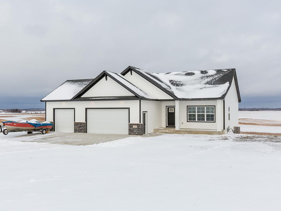 Excellent 5 bedroom 3 bath walkout rambler on country lot with great views of water & fields, over-sized 26x38 garage, covered 12x14 deck, tar road, center island, quartz tops, white & stained woodwork, panel doors, front porch, gas fireplace & lots of windows. Quality built and ready for you! Come see!!