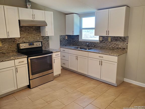 Move-In Ready Home on Spacious .76-Acre Lot in Elmendorf! Enjoy peaceful country living just minutes from I-37 in this charming 3-bedroom, 2-bath home. The open-concept layout features beautiful laminate plank flooring throughout the main areas and durable porcelain tile in wet spaces. The kitchen offers granite countertops, a stylish tile backsplash, stainless steel range with flat cooktop, and a convenient breakfast bar-perfect for casual dining or entertaining. The primary suite includes a walk-in closet and a full bath complete with a relaxing soaking tub and separate shower. Two additional bedrooms share a well-appointed full bath. Outside, you'll find mature oak trees providing natural shade, a fully fenced yard ideal for pets or gatherings, and a storage shed for tools and equipment. With ample space and a move-in ready interior, this property offers comfort, functionality, and room to grow!