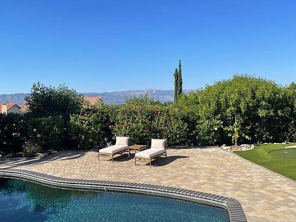 Step outside to your personal retreat an entertainer's backyard with a pool, hot tub, putting green, and ample space to relax or host guests. The setting is peaceful and picturesque, with gorgeous views of the valley and the added bonus of wonderful neighbors on a safe, family-friendly cul-de-sac. EV charging port in garage.