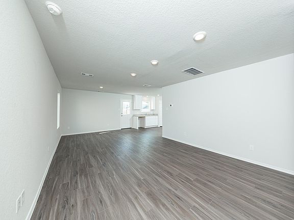 Vinyl plank flooringCovered patioOpen concept first floorLaminate countertopsGourmet kitchenWhite cabinets