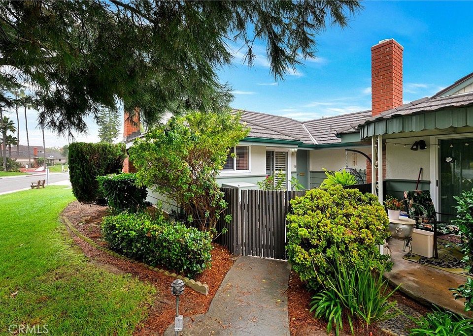 Expansive backyard patioSingle-story bungalow-style end unitPrivate front courtyardRenovated primary bathroomFresh interior paintRefreshed fixturesBeautifully redesigned shower