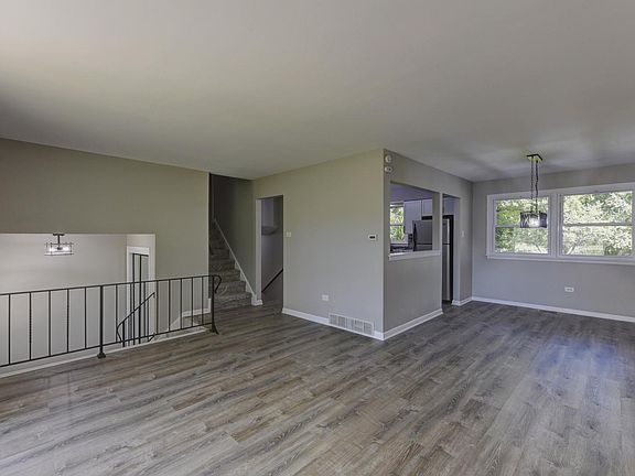 This 3 Bdr. 2 Bath REHABBED SPLIT LEVEL HOME with ATTACHED 2 CAR GARAGE on a 1/2 ACRE LOT in the MILLER WOODS SUBDIVISION of STEGER is nicely done in a GRAY & WHITE DECORE w/Black Ascents. It features UPDATED White cabinet KITCHEN & custom ceramic tiled BATHS, NEW FLOORING, NEW LIGHT FIXTURES, NEW WINDOWS, NEWER ROOF, NEW VINYL SIDING, NEW HWT, NEW WELL 6/22 NEW DRIVEWAY 7/22.