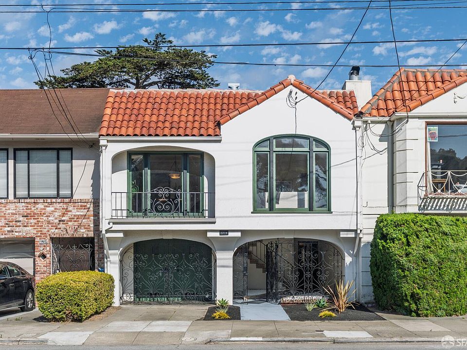 Welcome to this enchanting custom-built home. This home, never previously on the market, was custom built by the seller's grandfather with unique touches that are rare to find. What an opportunity to have a piece of history in a highly desirable neighborhood. The extra wide tunnel entry enclosed with decorative wrought-iron and featuring a custom skylight which creates a wonderful bright atrium. Home features unique parquet flooring, storybook like fireplace & arched windows in the living room, High ceilings in living & Gracious Formal Dining Room. Breakfast nook with period panels hand painted and built-in buffet, bright kitchen with window overlooking the entry atrium, and access to the hallway with skylight and bedrooms. Two Bedrooms & office/sitting area are situated at the back of the home allowing for privacy, perfect for entertaining. All bedrooms overlook the exceptionally deep and inviting back yard. Bathroom is good sized with tub and separate shower. Lower level offers a very spacious bedroom with walk in closet. At this level there is also a full bath. The very deep attached garage can park 2 maybe 3 cars tandem. High ceilings in the garage offer potential for expansion.Original condition. Close proximity to Ocean Beaches and so much more. New Roof June 2025.