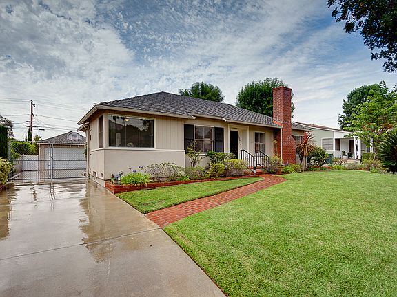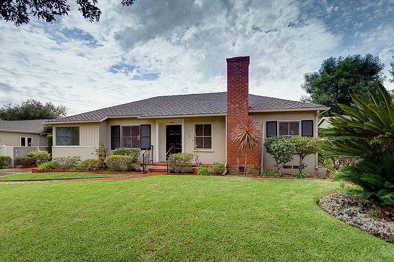 Located in the highly-desired neighborhood of Brigden Ranch in Northeast Pasadena, this four bedroom, two bathroom home blends vintage and modern into one ageless classic. Upon approaching the beautifully manicured home the brick walkway brings you to a classy black door with brass details, showcasing the homes effortless style. Beautiful hardwood floors and an expansive living room with a classic fireplace and built in bookshelves welcome you into the home. Down the hallway sits a full bathroom and three bedrooms. Each room is adorned with a gliding closet door and vintage light sconces that celebrates the homes 1940s pedigree. The third spacious bedroom boasts a large closet with built-in drawers and a sliding glass door leading to the backyard. Off the hallway, there are built-in cabinets, an oversized window and extra room that can used as a home office, sitting area or play space. The kitchen has open shelves and its own separate dining area, which makes this a wonderful space for the home entertainer. Additional vintage details, black and white linoleum and a swinging door that leads to the dining room add to the charm of this room. Adjacent to the kitchen is an elegant dining room accentuated with crown molding with accessibility to the living room and the corner wing of the house where the fourth bedroom can be found. The bedroom suite is spacious and ample with a large closet and private entry from the backyard. Just off the hallway there is the second bathroom with includes a bath tub and shower. The lush backyard leads to the bonus room, which is tucked away in the garden area. This room has its own private entrance and can be used as a home office or a creative art studio. The homes backyard feels like a delightful oasis, with a grassy area bursting with beautiful flowers and foliage. Nearby a spacious cemented space and a fish pond create the perfect area to set up patio furniture and a grill to enjoy meals alfresco. With beautiful mountain views and close proximity to the Gold Line and the famous Rose Bowl Parade, this home is in an ideal location. Don’t miss out on the chance to enjoy California living in this character-driven home found along a picturesque street in Pasadena!