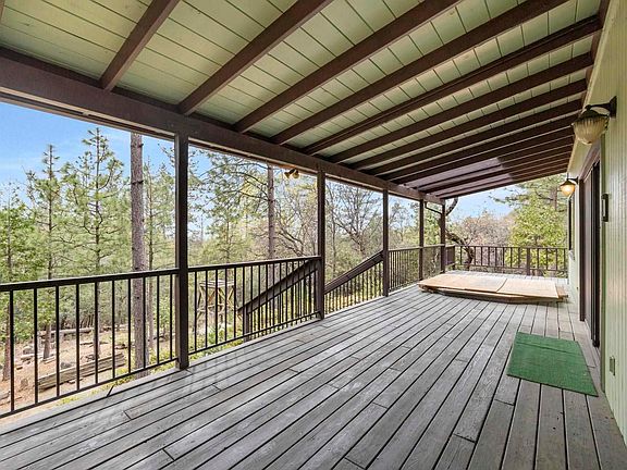 A Must See...Charming 2 story-ranch style home, cradled in the beautiful Sierra Foothills. This 3.5 acre parcel is completely deer fenced, and offers a gated entrance, allowing you to have the garden of your dreams without having to share with the adorable, but rather large deer population here in the Motherlode. The wrap around porch provides the perfect space to enjoy nature and expanded outdoor living. The spacious great room offers high ceilings, a custom fireplace and ample natural lighting. The formal dining room marries the great room and kitchen together, while providing plenty of space for a large party. Galley-style kitchen boasts of tile counters, ample cabinetry, desk nook and a breakfast bar. Completing the main level, one finds an office, full bathroom, and a laundry room. Upstairs are 3 spacious bedrooms, a full bath, and private deck. Additional amenities include large barn, 2 storage sheds, covered RV carport, loads of usable, well treed acreage, and small pond. Termite and septic cleared!