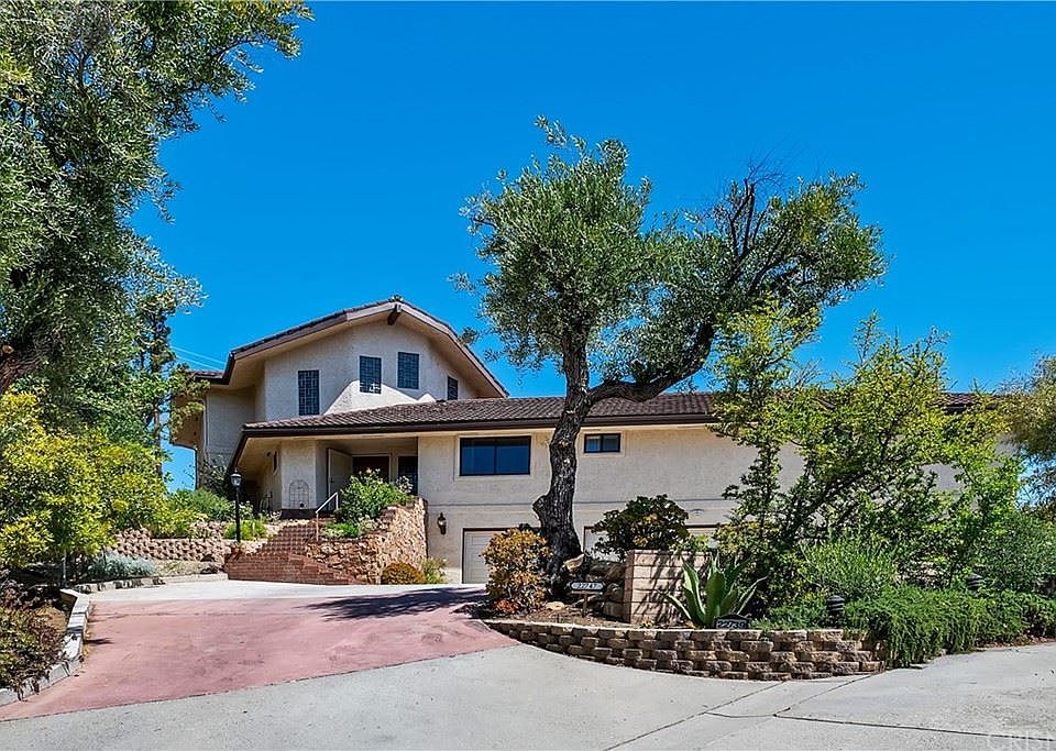 Welcome to this custom built home tucked in the Roy Rogers Estate! Nestled in the historic Chatsworth hillside away on a spectacular cul-de-sac, end of a private driveway. Breathtaking views from almost every room in the house. A large high ceiling entry. Step up to the massive living room with a fireplace and sliders to the backyard. A huge dining room with built-ins, buffet areas, storage cabinets, picture windows with amazing views. Main level en-suite bedroom is ideal for guests. The spacious kitchen has an island and a dumbwaiter down to garage. Breakfast area w/ a great corner sitting area with views of grounds and surrounding mountain, walking/hiking trails, pool & spa. Terrace for dining alfresco. Just off the kitchen you will find a walk-in pantry, laundry room w/sink, dark-room/work area. 3/4 bath and a Den/Office for working at home. Upstairs primary suite with tv/reading area, bookcases, large walk-in closet, direct access to the private balcony overlooking the incredible Santa Susana mountain views, nature, mature trees. The lower level has small room w/sink, could be a bachelor pad/guests has a private entry & access to pool area, bedroom, bathroom, walk in closet. Direct access to the extra long 3-car garage ( possibly6 cars?). Boat & RV pad- Storage shed. This is a must see treasure.