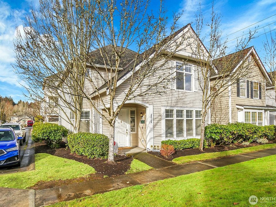 Desirable townhome in the sought-after Highland Parc Community of Sammamish! This 3-bedroom+Den, 2.5-bath home offers a spacious layout with brand new carpet and new lighting fixtures. The spacious living area features a cozy gas fireplace, and the kitchen boasts modern, stainless steel appliances with a gas range, quartz countertops, and a convenient breakfast bar. Upstairs the primary suite includes a walk-in closet and 5-piece bath, plus two additional bedrooms and a bonus loft area. Corner lot and large windows bring plenty of natural light throughout the home. Enjoy a private yard, 2-car garage, and access to walking paths. Open space in front of home. Prime location across the street from shopping and top-rated schools!