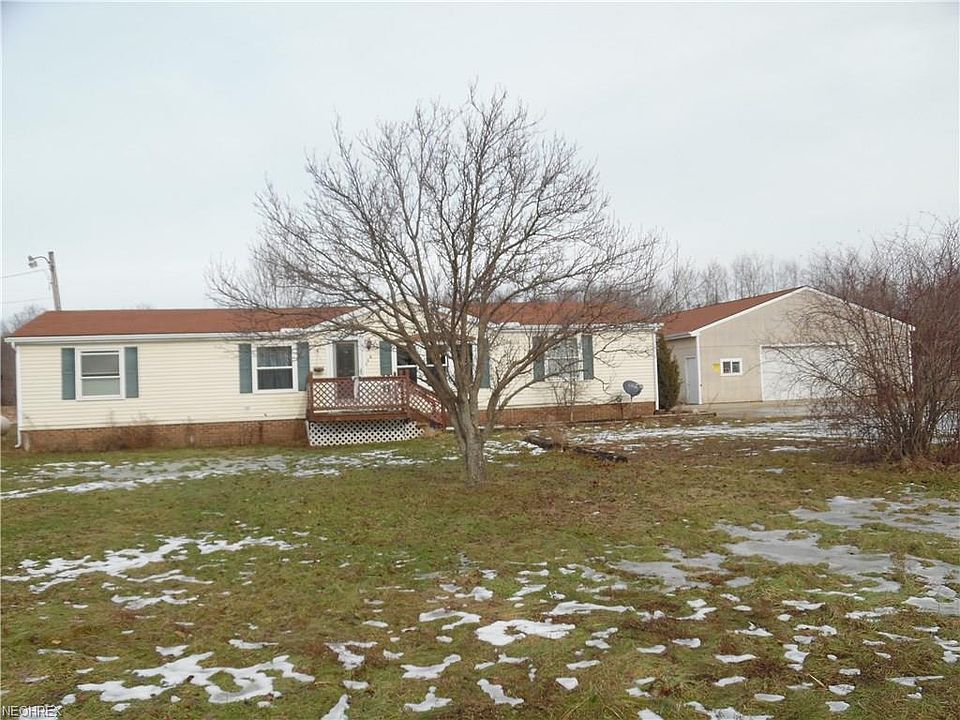 Nice quiet rural location to this 3b/2 bath Manufactured Ranch style home w/enclosed back porch & open deck. Detached large garage w/outbuilding. Pond is the water source to this property 2nd outbuilding houses the filtration system for water. Bank Owned As Is Condition - No Warranties - No Guaranties -