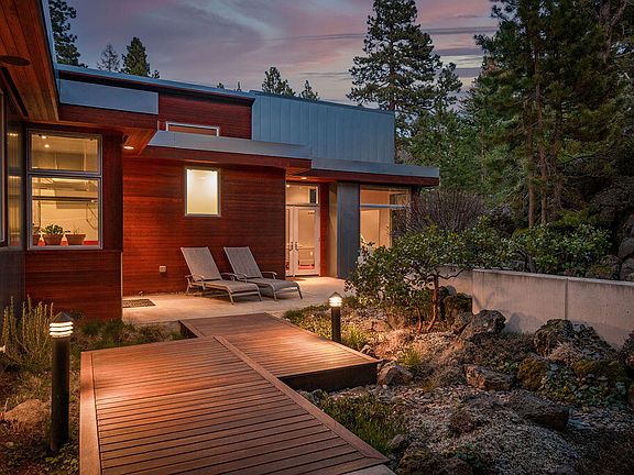 Take in breathtaking views from this extraordinary modern masterpiece perched above the river & a short distance from Downtown Bend. Enter through a lavish courtyard filled w/ native plants & stunning architectural style. A passive-solar design & towering windows fill the great room w/ light & captivating views that invite the outdoors in. A luxurious suite awaits in the North wing complete w/ 2 customized bathrooms, 2 walk-in closets, & gym. The South wing boasts 2 river view ensuites, & an office w/ phenomenal views. Take in nature from the expansive deck w/ multiple settings for entertainment & relaxation. Paddleboard on the river from the dock. Meticulously maintained by the original owners, this home is perfectly appointed for a comfortable Central Oregon lifestyle. Some of the many features include Brazilian mahogany floors, 12-zone radiant floor heat, premium appliances, remote shades & windows, wine fridge, dumb waiter & greenhouse. A list of amenities available upon request!