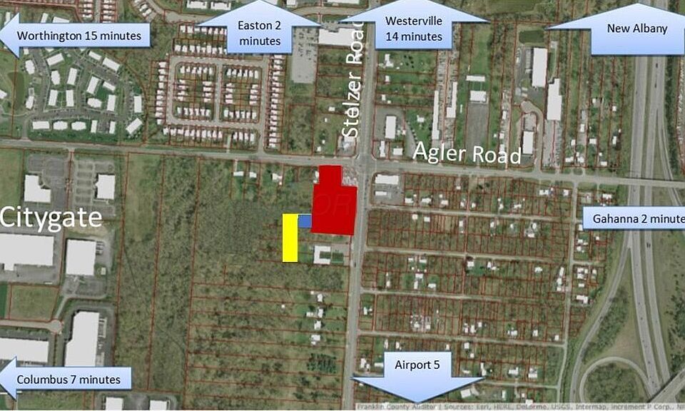 Approximately 350'+ of FRONTAGE ON STELZER RD. and 200' OF FRONTAGE ON AGLER RD is BEING OFFERED FOR THE FIRST TIME! ALL UTILITIES are available at Stelzer Rd. Multiple parcels. Additional adjacent 2 acres are available at $400,000 per acre behind the church building to the Southwest of RED A, which will have a future street access and frontage at the South boundary line of Parcel 191-001745. FANTASTIC LOCATION. ONLY 2 MILES TO EASTON TO THE NORTH. 1.5 MILES to I-670 or I-270 TO THE SOUTH. 2 MILES TO THE JOHN GLENN INTERNATIONAL AIRPORT. CITYGATE IS DIRECTLY WEST and SOUTH. Only minutes to Gahanna, Westerville, New Albany, and Downtown. A thousand apartments have been built within a block or two, and office, retail, warehouse is next door. All land will need rezoned for Buyer's use and re-parceled at Buyer's expense. DO NOT DISTURB RESIDENTS IN AGLER RD PROPERTY. And do not walk property without permission of Ted Oatts. Thanks. See Documents.