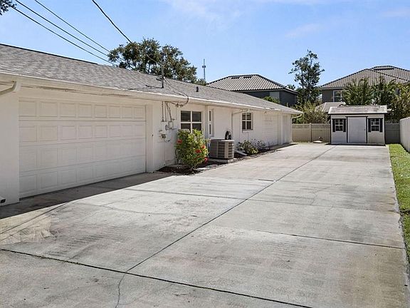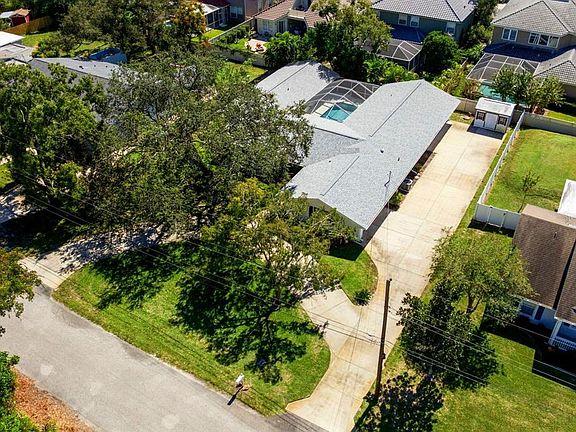 Looking for a move-in ready, one-of-a-kind Dunedin block home? Look no more! This mid-century 3BR/2BA pool home features both 2-car AND 3-car garages!!! It sits on a 1/3 acre lot in a NON flood, NON evacuation zone on a dead end street with sparse traffic. Plus, the neighborhood is in unincorporated Dunedin with NO HOA. It is conveniently located just off the beaten path yet near everything! Home has easy access to major thoroughfares leading to supermarkets, restaurants, major shopping hubs, Westfield Mall, Dunedin Beaches, and the Historic Downtown District. The home has a captivating curb appeal with a dramatic oak tree, circular driveway, large parking pad, covered front porch, and double door entrance. The interior offers a bright, spacious, split bedroom plan with oversized rooms, triple glass sliders, 3 sets of exterior French Doors, dual A/C systems, dual water heaters, and workbenches in both garages... Upon entering, you're greeted with a large central foyer adjacent to two interior living areas and French Doors leading to a relaxing ouitside living space. The floor plan includes: large living room with triple sliders to lanai, oversized kitchen with casual dining area, spacious master suite with double ceiling fans & French Doors to lanai, huge master bath with double vanities - walk-in shower - walk-in closet & private toilet, roomy guest bedroom with French Doors to lanai, office or 3rd bedroom with built in shelving, updated hall bath, laundry room, pool bath and access to both garages. The abundant indoor & outdoor living spaces with refreshing pool make this home PERFECT for entertaining. Updates include: KITCHEN: cabinets, counters, hardware, backsplash, under cabinet lighting, double sink & faucet, MASTER BATH: double vanities, lighting & custom tiled walk-in shower with benches, HALL BATH: double showerheads, custom tiled walk-in shower & glass enclosure, INTERIOR: ceiling fans, crown molding, window blinds, recessed lights & French Doors to master bath, EXTERIOR: lanai ceiling fan, screened enclosure, well sprinkler system, PLUS a newer roof (2022). This home also allows you to enjoy countless amenities the area offers: beaches, parks, casual & fine dining, roof top bars, micro-breweries, cafes, bike riding, boating, fishing, downtown festivals, concerts, art shows, spring training baseball, championship golf, sunsets, and events at the Community & Fine Art Centers. This is a MUST SEE for buyers seeking a unique home with lots of extras in an ideal location.