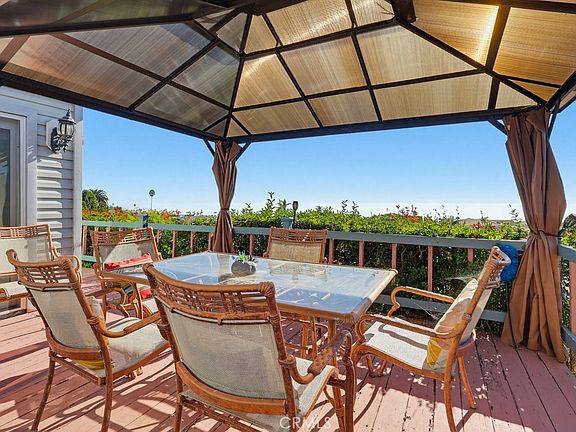 Exciting opportunity to own in the highly desirable Palos Verdes Shores! Enjoy panoramic ocean, Catalina Island & hillside views from this amazing turnkey 3-bedroom, 2-bathroom 2040sf home residing on a large lot & a quiet street. Back deck spans the length of the home & offers multiple ocean view seating areas including a covered Gazebo & a covered lounge area. Living room, dining room, kitchen, foyer & 2 bedrooms also boast stunning ocean, Catalina Island & sunset views! Open concept kitchen features Granite countertops, wood cabinets, island, 4-seat breakfast bar, gas stove, microwave, oven, dual sinks, stainless steel refrigerator, dishwasher, recessed lights & easy-care tile floors. Light & bright open concept great room features fantastic living room & dining area boasting high ceilings, sliding glass doors, French doors, recessed lights, built-in cabinets, easy care floors & stunning ocean, Catalina Island & sunset views. First primary bedroom offers amazing ocean, Catalina & sunset views while lying in bed, wood floors, walk-in closet & bathroom ensuite equipped w/tile floors, walk-in shower, dual sinks, linen closet & extra storage cabinets. Second bedroom currently being used as a media room & features crown molding, wood floors & glass doors leading to the deck that captures stunning ocean, Catalina Island & sunset views. Guest bathroom features single sink vanity, walk-in shower & tile floors. Third bedroom can be used as a second primary bedroom, home gym, or office, & offers wood floors, mirrored closet doors & attached bathroom w/walk-in shower. Laundry room inside home features washer & dryer plus cabinetry for extra storage. 3 storage sheds on this large lot makes this the perfect place to downsize to! Exterior offers river rock masonry siding, side-by-side 4 car covered parking, multiple gardening areas, gated dog run & areas for pets to run freely, low maintenance front yard & vinyl fencing. NO Property Taxes & Lower than Average Space Fee! Palos Verdes Shores is a gated community w/hiking, private Golf Course, heated pool, hot tub, carwash, sauna, lit tennis & pickleball courts, RV & boat parking, 2 dog parks, gardens, rec. center, salon & spa, gym, movie theater, billiards, 2 lounges, banquet hall, restaurant-like kitchen, library, meeting room, security, management & maintenance. Community activities include water aerobics, dance, stretch, yoga, tai chi & hula + more. Located near restaurants, malls, stores, banks, medical & freeways.