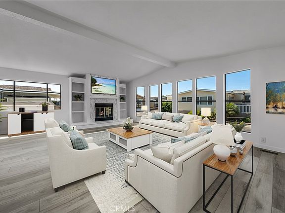 Welcome to the resort-style upscale coastline community of Palos Verdes Shores, a 55+ community overlooking the blue Pacific and Catalina Island. This manufactured home sits on one of the largest spaces within the complex on a flat, corner lot across from the beautifully remodeled clubhouse, pool and tennis courts. Built in 1983, this triple-wide home has an expansive living room with cathedral ceilings, walls of glass streaming with tons of natural light, a cozy fireplace, an open floorplan with adjacent dining area, new luxury waterproof wood-plank flooring, and is freshly painted throughout. Both bedrooms are oversized and have grand walk-in closets. The primary bedroom features ensuite with sunken tub, dual lavs & separate shower. The kitchen has new stainless appliances, Calacatta quartz countertops, tons of cabinets including a walk-in pantry and a breakfast bar for casual dining. New pex plumbing, upgraded electrical & new piers & safety supports installed. The highly sought-after 24-hr guard-gated community offers a multitude of amenities and activities including a no fee 9-hole Par-3 golf course for residents and guests, a large heated pool, jetted spa, sauna, tennis & pickleball courts, ping pong, library, dog park, newly remodeled clubhouse, gym, fitness center, hiking trails and many social activities to join in if you so desire. Space Rent is $2300/month which includes all park amenities. There are NO annual property taxes. Located close to the picturesque Terranea Resort, Trump Golf Course, shopping, restaurants and some of the best hiking trails around. Come watch the sunset over the ocean and enjoy the splendor of California beach living at it's best! This friendly community is one of the best kept secrets in Southern California! Come join the comfortable, resort lifestyle on the coast!