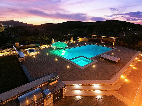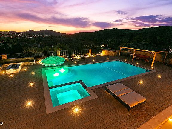 Luxury Resort-Style Retreat in Prestigious Gated Lynnmere EstatesNestled in the breathtaking surroundings of Arroyo Conejo Open Space and Wildwood Park, this stunning 5-bedroom, 3-bathroom estate offers the ultimate blend of luxury, privacy, and natural beauty. Located behind the gates of Lynnmere Estates on a premium 17,000 sqft. lot, this home is a true Southern California retreat, boasting panoramic mountain views, resort-style amenities, and a sprawling entertainer's backyard.Elegant & Thoughtful DesignAs you step through the grand two-story entry, you'll be welcomed by an open, light-filled floor plan with soaring vaulted ceilings and wood-like floors. The formal living room features a cozy fireplace and expansive windows, seamlessly leading to the bar and dining area, perfect for hosting.The gourmet kitchen is a chef's dream, equipped with a gas range cooktop, double ovens, quartz countertops, a breakfast bar, center island, and eat-in dining space. The adjacent family room is warm and inviting, with a fireplace, custom built-ins, and doors opening to the backyard oasis.Luxurious Primary Suite & Spacious BedroomsUpstairs, the primary suite is a private sanctuary, offering breathtaking greenbelt and hilltop views from its private deck--ideal for morning coffee or sunset dinners. The suite features dual walk-in closets with organizers and a spa-like bathroom retreat with a stand-alone tub, generous shower, and double vanity.Three additional bright and spacious secondary bedrooms upstairs feature and ample storage. A beautifully appointed hallway bathroom serves these rooms. A fifth bedroom and full bathroom downstairs are perfect for guests or a home office.Ultimate Entertainer's BackyardDesigned for year-round entertaining, this ultra-private backyard boasts:✅ Pebble-tech saltwater pool & spa (with remodeled equipment, connected to app)✅ Built-in BBQ & outdoor wine fridge✅ Firepit & multiple patios for lounging and dining✅ Second-story deck with breathtaking panoramic views✅ Side yard with RV accessAdditional Features & Amenities✔ Three-car garage with new doors, the third bay houses a soundproof climate-controlled room (perfect for a music studio, home office, or theater)✔ Separate laundry room for convenience✔ Dual-pane windows & updated finishes throughout✔ Prime location on a quiet cul-de-sac within a prestigious gated communityUnbeatable Location