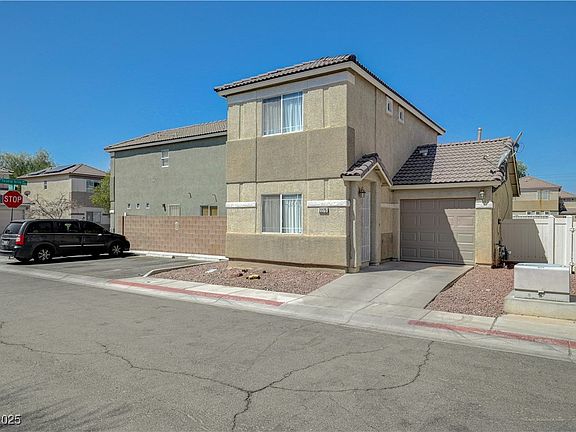Gated northeast Las Vegas community - beautiful two-story home, 2 bedrooms and 1.5 bathrooms, this residence combines style and functionality. Enjoy sleek tile flooring on the main level and modern laminate upstairs carpet only on stairs. Free for easy upkeep. The upgraded open-concept kitchen boasts granite countertops and ample cabinet space, perfect for cooking and entertaining. Step outside to a low-maintenance backyard with pavers and synthetic grass ideal for relaxing or hosting gatherings. Additional features include an attached one-car garage, driveway parking, and first-come guest parking.