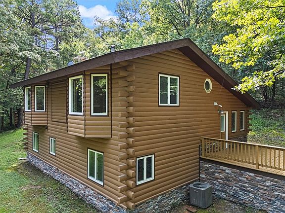 Nestled on 6.31 acres of wooded land with nature right outside your front door, this updated log-sided home blends rustic charm with modern comfort. Recent improvements include a new roof and skylights (2023), new furnace and water heater (2024), whole-house water filtration, refinished and new hardwoods, remodeled primary bath, new deck off the primary bedroom, and new refrigerator/washer/dryer included. Home also features additional den or office space. Outdoor enthusiasts will love being minutes from Illinois River and Gypsy Camp canoeing, WOKA Whitewater Park, Fisher Ford Kayak Park, and 6 miles of bike trails to WOKA. Ideal as a full-time home, weekend retreat, or short-term rental—downtown Siloam Springs shops and restaurants are only a quick 10-minute drive.
