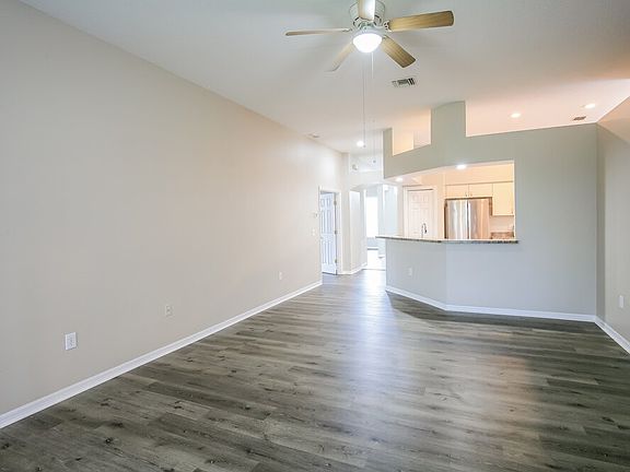 Some images have been virtually staged to help showcase the potential of spaces in the home. The furnishings shown are for illustrative purposes only and are not included in the home. This stunning four-bedroom, two-bathroom rental home located in Land O' Lakes, Florida offers future tenants many convenient amenities. You'll score a screened-in sunroom, an attached garage, a fenced-in yard, and an office. Partake in tasty home cooking by taking advantage of the eat-in kitchen's stainless steel appliances. Additionally, you'll receive great storage options in the form of a generous pantry and numerous cabinets. Find your personal oasis in the spacious main bedroom equipped with dual vanity sinks, a walk-in shower, an oversized bathtub, and a huge walk-in closet. While you eat, take in the dining room's gorgeous features such as the vinyl plank flooring, crystal-clear sliding glass doors, and a charming ceiling fan. Book a tour today to get up close to this delightful rental home.