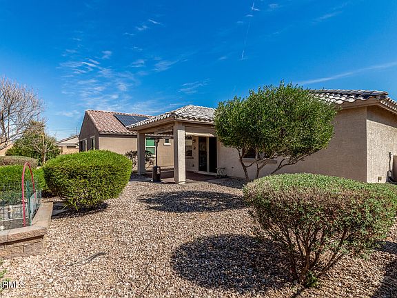 Welcome to your dream retirement home in the heart of the Sundance Adult Village, an exclusive 55+ community in Buckeye, Arizona. This charming 1,578 sq ft residence offers 2 bedrooms, 2 bathrooms, and a versatile flex space perfect for a home office or hobby room. Recently refreshed with new interior paint and professional cleaning, this home is move-in ready. The open-concept kitchen seamlessly flows into the great room, creating an inviting space for entertaining. The master suite features a spacious walk-in closet and a luxurious en-suite bath. Additional highlights include ample space for guests, organized living, and a dedicated golf cart garage for added convenience. Living in Sundance means embracing an active lifestyle. The community boasts a 15,000 sq ft recreation center equipped with a modern fitness center, arts and crafts studio, billiards room, card room, library, and meeting spaces. Outdoor amenities include heated resort-style and lap pools, spa, and courts for tennis, pickleball, and bocce ball. Golf enthusiasts will love the on-site Sundance Golf Club, offering an enjoyable golfing experience with easy access via your own golf cart. Nearby, residents have access to shopping, dining, and medical facilities, including Adelante Healthcare and CVS MinuteClinic. Outdoor lovers can explore the nearby White Tank Mountain Regional Park, featuring scenic trails and nature programs. With over 20 clubs and interest groups, from fitness to quilting and bridge, there's always something to engage in, and the community's vibrant social calendar ensures residents can easily connect and build lasting friendships.