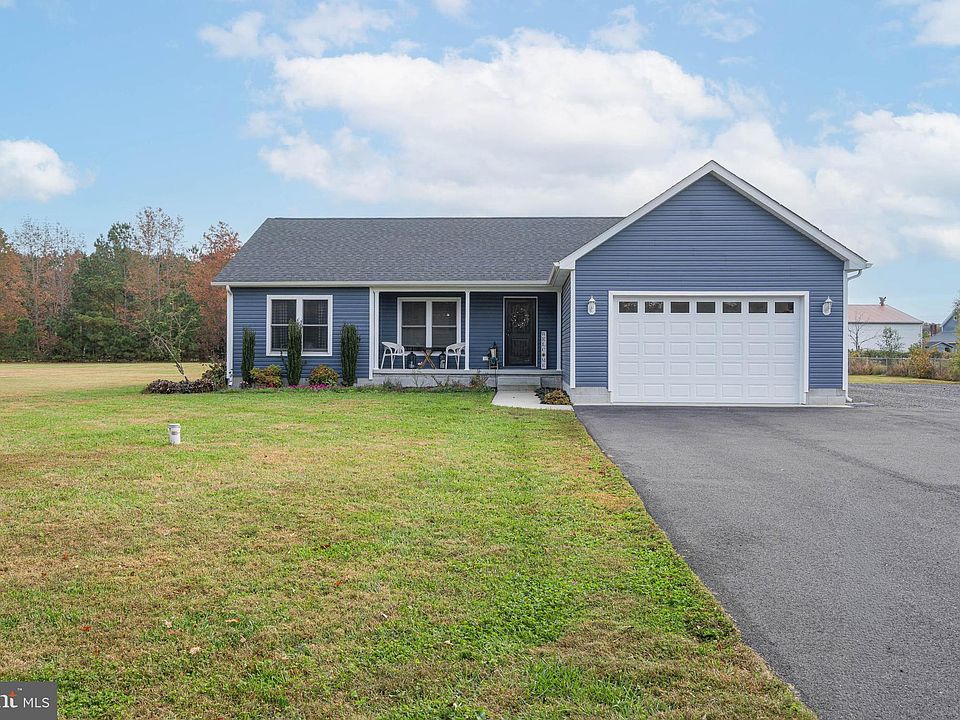 Built in 2020, this stunning single-level home perfectly combines modern comfort with country charm. The spacious open floor plan features 3 bedrooms and 2 bathrooms, with luxury vinyl plank flooring flowing throughout the main living areas. The expansive living room offers plenty of space for relaxing or entertaining, while the kitchen is a chef’s dream—complete with stainless steel appliances, elegant pendant lighting, and a center island with counter seating.  The open-concept design connects seamlessly to the dining area, where sliding glass doors lead to a private patio overlooking the fenced yard and pool—perfect for gatherings or simply enjoying the peaceful rural setting. The primary suite includes an ensuite bathroom with a step-in shower and double vanities, while two additional bedrooms share a full hall bath with a tub/shower combination.  Energy-efficient solar panels help keep utility costs low. The oversized driveway provides ample parking for 12+ vehicles and even space for your boat—perfect for weekend getaways or fishing adventures.  Nestled in a quiet rural location between Route 404 and Route 13, this home offers the ideal balance of tranquility and convenience—just a short drive from Lewes and Rehoboth Beach.  Schedule your tour today and experience all this beautiful home has to offer!