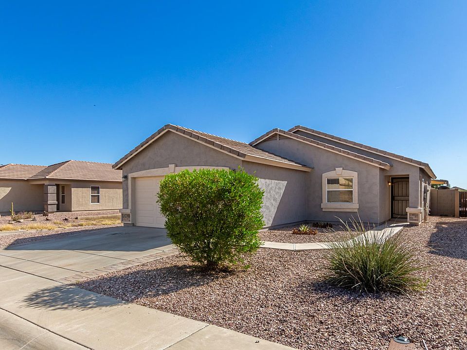 Family single level home located at only a 4-min drive to grocery shops, restaurants, retail stores, banks & with easy access to the highway. This home is enhanced throughout the house with a 20x20 polished porcelain tile flooring, blinds & ceiling fans. The kitchen offers maple kitchen cabinets, glass tile backsplash, plenty of countertop space with an island, a spacious eat-in kitchen area & a reverse osmosis system. The master bathroom has a walk-in shower surrounded with travertine tile & the secondary bathroom has a tub/shower combination with tile surrounds. The desert landscaped front & back yards provide low maintenance. The backyard offers an RV gate and a storage shed. The north/south orientation, the sunscreens & covered patio are great features for energy efficiency. Refrigerator, washer & dryer included. No cats allowed. Also for sale.