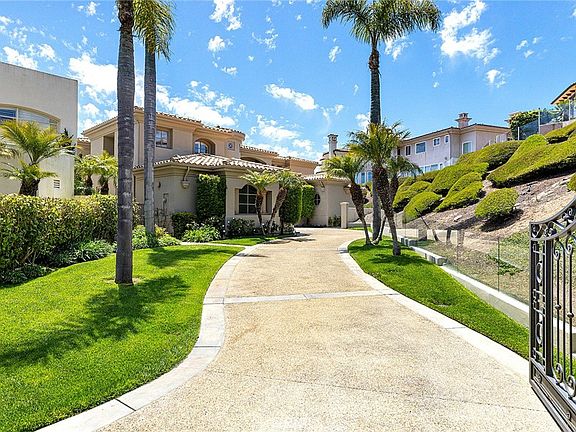 Perched high above the Pacific in the exclusive guard-gated community of Monarch Point, this elegant coastal home offers sweeping panoramic views of the ocean, coastline, and city lights. Thoughtfully designed for both comfort and entertaining, the open-concept floor plan is filled with natural light and features soaring ceilings, a spacious living room with fireplace, formal dining area, and a welcoming family room that opens to the beautifully landscaped backyard. The gourmet kitchen includes premium appliances, custom cabinetry, and a large center island, ideal for gatherings. The main-level primary suite offers privacy and convenience, while additional bedrooms upstairs provide ample space for family or guests. A large dedicated office provides a quiet and functional space for working from home. The serene backyard features a private spa surrounded by lush landscaping—an ideal retreat to relax and unwind. Situated at the end of a quiet cul-de-sac, the home also includes its own gated driveway, offering added privacy and security. Monarch Point residents enjoy exclusive amenities including lighted tennis courts, a clubhouse, pool, spa, and scenic hiking trails with sweeping ocean vistas. Located just minutes from world-class resorts, beaches, fine dining, shopping, and top-rated schools, this home embodies the best of Southern California coastal living.