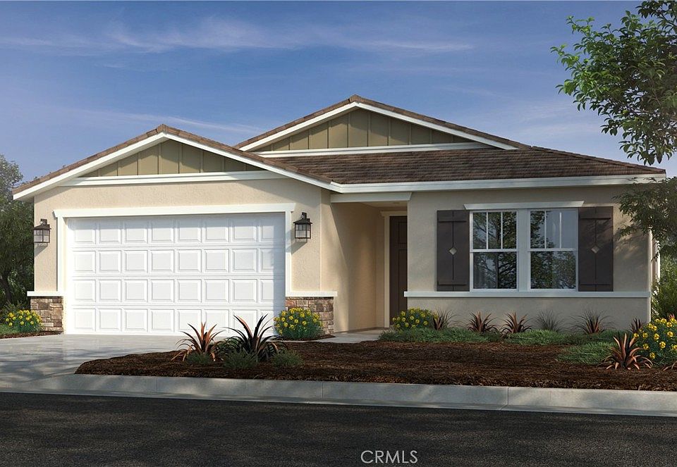 Embrace the beautiful mountain views from your single-level home at this new construction community in the Wildomar Valley foothills. This ENERGY STAR certified home helps to reduce monthly costs and creates a healthier indoor environment for you. It includes 9' high ceilings, 3 bedrooms plus spacious den, a large walk-in closet at the primary bath, tons of storage and is on an oversized lot. Designer features include frost white quartz countertops with shaker cabinets and fingerprint resistant stainless steel Whirlpool appliances in the kitchen, double doors at the Den, and vinyl wood plank flooring. Photo is a rendering of the model. Buyer can either lease or purchase the Solar.