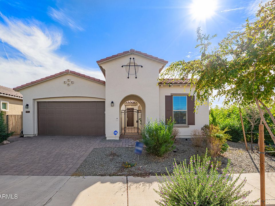 Modern 4-bed, 2.5-bath Queen Creek home with a dedicated office, 3-car tandem garage, and over 2,500 sqft of living space. Built in 2022, this stylish home features high ceilings, an open layout, a chef's kitchen with gas cooktop, upgraded cabinets, and granite counters. Huge 12-ft sliding door opens to a private backyard with built-in BBQ and covered patio—perfect for entertaining. Primary suite offers dual vanities and walk-in closet. Tile floors, soft water loop, gas stub, and more. Located near parks, top-rated QC schools, and shopping. Move-in ready and full of upgrades.