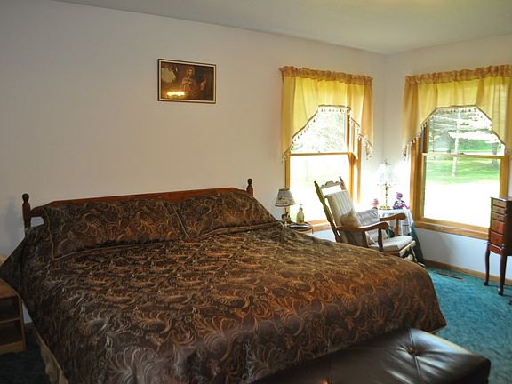 Private one level living on 40 wooded acres. Master suite with double vanity and walk-in closet. Open floor plan, with living room, family room and sunroom. Large kitchen, mudroom and 3 car attached garage, 50x96 Pole Bldg, incl. 25x40 insulated shop.