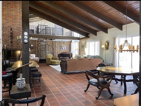Stunning entry doors, custom built in Spain, welcome you in! Four bdrm 4 1/2 bath home in Carroll Park area. Open floor plan, soaring wood/beamed vaulted ceilings, wall of windows offers beautiful view of backyard, a massive brick wall fireplace, (designed to heat entire home thru heat system, if you choose) & circular staircase to 2nd flr loft style bedroom w/half bath, patio door & balcony. Expansive kitchen w/vaulted ceilings, new countertops 2021, skylights, 3 x 10 solid wood bar with original custom stools, indoor charcoal grill of all brick masonry w/separate flue & glass doors. Kitchen skylights provide abundant natural light to kitchen & dining room & were designed to highlight original handcrafted chandelier. Den/office w/brick walls, custom wood worktop/counter, patio door, storage cabinets. 1st flr mstr. suite w/wood flooring, updated bath two vanities, marble jetted tub surround. 1st flr. laundry wl full bath, full basement with 4th full bath. Many more details!