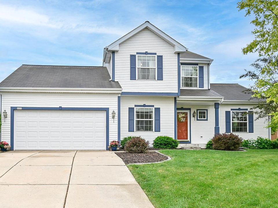 Welcome to Hunter's Crossing, where you will find this beautiful custom 2nd owner colonial. Nestled in a sought-after neighborhood, this home boasts 3 bedrooms & 2.5 baths, including a fully remodeled primary bath that epitomizes luxury & comfort. The welcoming layout is perfect for both casual family gatherings & entertaining guests. The heart of the home is the light, bright kitchen w/ center island & eat in area, which flows seamlessly to vaulted family room. Formal dining & living room w/ gas fireplace a cozy spot to unwind. Rare main floor primary bedroom w/ huge walk-in closet a real bonus. Convenient main floor laundry. Two upstairs oversized bedrooms w/ full bath. Freshly painted exterior trim, along with newer furnace & AC. Close to I-43, schools, playground, shops, & dining!