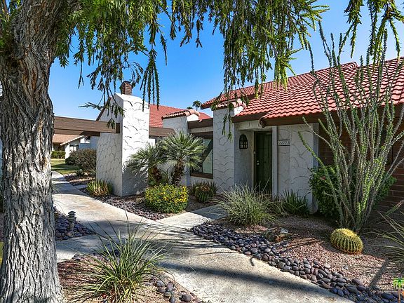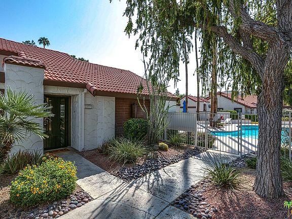 Looking for a single detached bungalow without the hassles and maintenance of single detached home ownership? Start living the carefree desert lifestyle at Canyon Sands in south Palm Springs. This immaculate home is offered furnished and has been very tastefully updated with stainless steel appliances and recessed lighting. Dual pane windows and sliders and interior sun shades keep this home cool. This cozy two bedroom bungalow shares no common walls with adjacent homes. The attached 2 car garage has plenty of space for storage. Dine outside on a private patio. Located inside the complex; not on Gene Autry Trl. tucked away from traffic noise and near the community's many amenities. Canyon Sands offers 7 pools, 7 spas, 6 tennis courts. All in park-like setting. The complex is well-maintained, healthy reserves, and onsite management. Only minutes to PSP and downtown and across from Von's shopping center. Perfect for your own desert escape or a great investment opportunity.