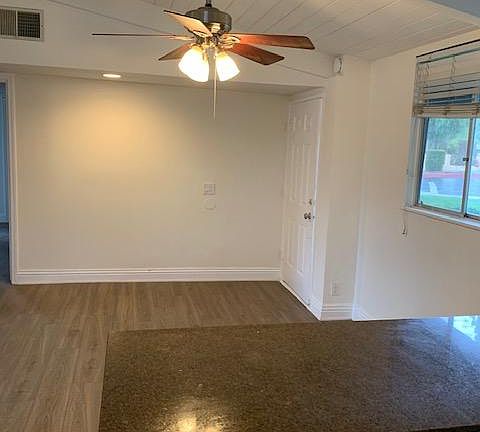 Convenient to award winning elementary and high schools. Single family 1540 sq. ft. residence, vaulted ceilings, granite counter top in kitchen with dishwasher, garbage disposal, gas range with oven and cooktop. One full bath off hallway and one three-quarter bath off primary bedroom. Central heat and air conditioning, clothes washer and dryer provided. New paint and hardwood flooring throughout. BOTH BATHROOMS ARE CURRENTLY BEING BEAUTIFULLY REMODELED FOR MID-OCTOBER MOVE IN! Concrete deck outside living room area. Two car detached garage has attached carport and office/storage room. Unfortunately, we are not registered to accept your benefits of Sec. 8. NOTE: It would be most helpful if you would fill out the Zillow Renter Information form BEFORE you request a viewing. That will provide standard profile data and help the owners determine if the property is right for you.