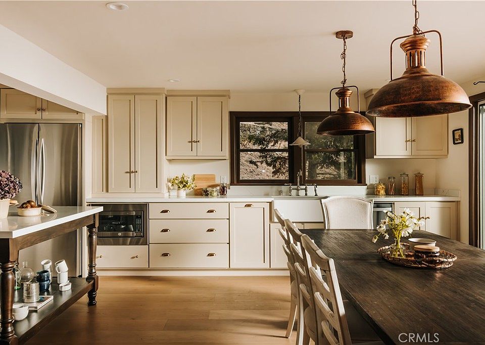 Welcome to this beautifully remodeled 3-bedroom, 3-bathroom home perched on an oversized lot with breathtaking views of the mountainous valley below. Designed for both comfort and style, this home features expansive decks that seamlessly blend indoor and outdoor living—perfect for relaxing or entertaining while soaking in the stunning scenery. Upon arrival, you'll notice the two-car garage and oversized driveway offering plenty of parking. A thoughtfully designed natural landscape and stone steps lead you to the front entrance, or take the charming bridge directly to the open deck for a grand welcome. Step inside to a gorgeous, designer country kitchen, fully remodeled and equipped with a professional-style range—ideal for preparing meals for family and guests while enjoying the sweeping views. The accordion sliding doors open to the deck, creating a true indoor-outdoor living experience. Just up from the kitchen, the large open living room features a beautiful stone fireplace, perfect for cozy evenings. A few steps further leads you to the primary suite, a private retreat complete with a spa-like bathroom offering relaxation and luxury. Head up the spiral staircase to find two additional guest bedrooms and a full bath, thoughtfully separated to offer privacy and comfort for your guests. This home is a rare blend of mountain charm, modern upgrades, and unbeatable views—schedule your showing today and experience it for yourself!