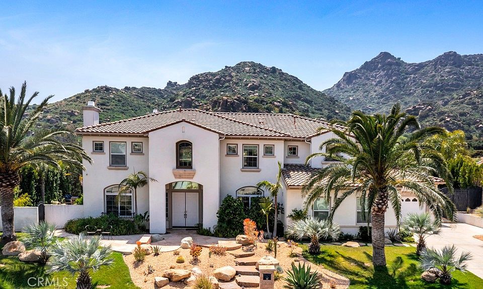 Major price improvement! Fabulous opportunity to live in the exclusive guard gated community of Indian Oaks Estates! Gorgeous pool and view home tucked into the Santa Susana Mountains, beautifully set amongst the trees and rock formations with spectacular views. Step into the dramatic entry with a cathedral ceiling, flanked on each side by a formal living room with a cozy fireplace and formal dining room. As you make your way further into the house, you will find the family room, also with a cozy fireplace and a mountain view. The family room opens to the updated kitchen with an informal dining area, granite counters & stainless steel appliances, a large island with 2 wine refrigerators, each capable of simultaneously storing wine at 3 different temperatures. A butler's pantry between the kitchen and dining room was converted to a climate controlled wine cellar, capable of storing 800+ bottles. The downstairs also features a bedroom with an en suite bathroom and a separate large office. Head upstairs to the primary suite with a cozy retreat and a huge en suite bathroom. The en suite features two vanity areas, a large tub with a mountain view, separate shower, two separate water closets, and a large walk in closet. There are three additional upstairs bedrooms, all of which also have attached en suite bathrooms. All bedrooms with custom closet systems and blackout blinds. There is a big bonus room at the top of the stairs overlooking the pool and the gorgeous mountain views. The back yard features a pebble tec salt water pool & spa with a waterfall. A covered patio with lighting, fans, speakers, and a fire pit. Two spacious lawn areas with mature fruit trees. A meditation path down the hillside. Plenty of additional space to relax and entertain. Very tranquil and serene with spectacular views. Other features include two finished two car garages with epoxy floors and plenty of storage. Large indoor laundry room. New dual zone HVAC system. Seller owned Tesla solar with battery back ups. Hard wired security cameras with 24hr recording & onsite storage. Pre-wired for remote monitoring of fire and alarm systems. Smart lock front door, smart garage openers with cameras, smart blinds in common areas. Cell phone booster on the roof. Located in unincorporated LA County. Steps away from hiking trails. An immaculate and move-in ready home, surrounded by natural beauty. Your oasis awaits!