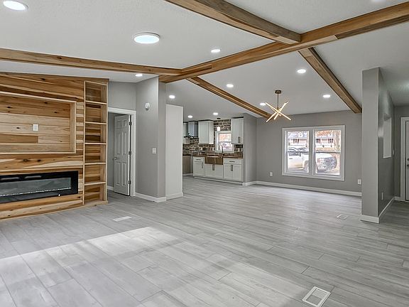 Set on a permanent foundation, this spacious mobile home blends comfort and style with beautiful wood beams, a stone kitchen backsplash, and gold sink accents. The living room features custom wood built-ins and an elegant electric fireplace. Retreat to the large primary suite with a garden tub and double vanities. Unique character, generous space, and move-in ready.