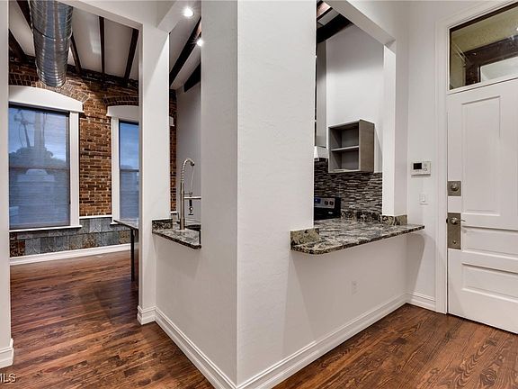 Industrial-style fixturesAbundance of natural lightQuartz countertopsHigh ceilingsExposed brick wallsHardwood floorsWood beams